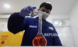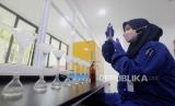 REPUBLIKA.CO.ID,DEPOK -- Petugas saat melakukan pemeriksaan sampel di Laboratorium MUTU International, Cimanggis, Depok, Jawa Barat, Senin (14/8/2023).