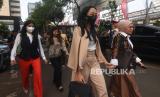 REPUBLIKA.CO.ID,JAKARTA -- Dua finalis Miss Universe Indonesia 2023 (kiri dan kedua kanan) didampingi kuasa hukumnya berjalan keluar saat jeda pemeriksaan di Unit Pelayanan Perempuan dan Anak (PPA) Ditreskrimum Polda Metro Jaya, Jakarta, Senin (14/8/2023).