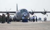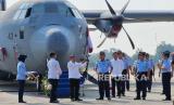 Wakil Menteri Pertahanan, Muhammad Herindra, melakukan penyerahan pesawat Hercules C-130J-30 dari Kementerian Pertahanan kepada TNI Angkatan Udara di Landasan Udara Halim Perdanakusuma, Jakarta Timur, Selasa (15/8/2023). (FOTO : Republika/Ronggo Astungkoro)