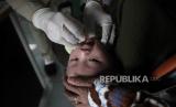 Petugas Puskesmas Kelurahan Petojo Utara memberikan imunisasi Rotavirus di RPTRA Flamboyan Kejora, Gambir, Jakarta Pusat, Selasa (15/8/2023). Kementerian Kesehatan menggelar imunisasi Rotavirus kepada anak-anak usia dua hingga empat bulan yang dilaksanakan secara Nasional untuk mencegah kejadian diare berat. (FOTO : Republika/Putra M. Akbar)