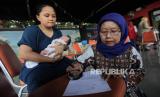Petugas mendata anak sebelum imunisasi Rotavirus di RPTRA Flamboyan Kejora, Gambir, Jakarta Pusat, Selasa (15/8/2023). Kementerian Kesehatan menggelar imunisasi Rotavirus kepada anak-anak usia dua hingga empat bulan yang dilaksanakan secara Nasional untuk mencegah kejadian diare berat. (FOTO : Republika/Putra M. Akbar)