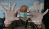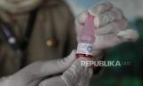 Petugas Puskesmas Kelurahan Petojo Utara memperlihatkan dosis vaksin Rotavirus di RPTRA Flamboyan Kejora, Gambir, Jakarta Pusat, Selasa (15/8/2023). Kementerian Kesehatan menggelar imunisasi Rotavirus kepada anak-anak usia dua hingga empat bulan yang dilaksanakan secara Nasional untuk mencegah kejadian diare berat. (FOTO : Republika/Putra M. Akbar)