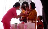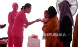 Ketua Umum Bhayangkari Juliati Sigit Prabowo (kiri) memberikan bantuan program Bhayangkari Peduli di Kalimantan Barat, Senin (14/8/23).Dalam kunjungan di posko stunting RS Bhayangkara Tk. III tersebut, Ketua Umum Bhayangkari memastikan pemeriksaan terhadap anak stunting dan ibu hamil berisiko tinggi stunting dilakukan secara maksimal.Data pasien di posko tersebut menunjukkan, di seluruh wilayah Kalbar untuk anak usia 0-2 tahun terdapat 149 anak severly stunting dan 302 positif stunting. Kemudian, anak usia 2-5 tahun terdapat 137 severly stunting dan 400 positif stunting. (FOTO : Dok.Republika)