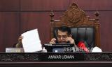REPUBLIKA.CO.ID,JAKARTA -- Ketua Majelis Hakim Mahkamah Konstitusi (MK) Anwar Usman bersiap memimpin jalannya sidang putusan pengujian materiil Undang-Undang Nomor 30 Tahun 2002 tentang Komisi Pemberantasan Tindak Pidana Korupsi di gedung MK, Jakarta, Selasa (15/8/2023).