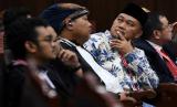 Koordinator Masyarakat Antikorupsi Indonesia (MAKI) Boyamin Saiman (kedua kanan) mengikuti sidang pembacaan putusan Pengujian Materiil Undang-Undang Nomor 30 Tahun 2002 tentang Komisi Pemberantasan Tindak Pidana Korupsi di Gedung MK, Jakarta, Selasa (15/8/2023). MK menolak permohonan uji materi yang diajukan Masyarakat Antikorupsi Indonesia (MAKI) yakni Boyamin Saiman dan Christophorus Harno, sehingga perpanjangan masa jabatan pimpinan KPK dari empat tahun menjadi lima tahun tetap berlaku pada era pimpinan Firli Bahuri. (FOTO : Antara/Sigid Kurniawan)