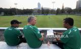 REPUBLIKA.CO.ID,JAKARTA -- Pelatih Timnas Indonesia U-17 Bima Sakti (kanan) berdiskusi dengan Direktur Teknik Frank Wormuth (tengah) saat memantau seleksi pemain Timnas Indonesia U-17 di Lapangan A, Gelora Bung Karno (GBK), Senayan, Jakarta, Selasa (15/8/2023).