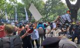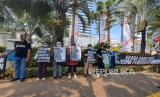 REPUBLIKA.CO.ID, JAKARTA -- Koalisi Ibukota melakukan aksi demonstrasi menuntut Pemprov DKI melakukan upaya pengendalian pencemaran udara, di Balai Kota DKI Jakarta, Rabu (16/8/2023).