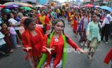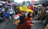 Kemeriahan Lembang Carnival Days di Jalan Raya Lembang, hingga Alun-alun Lembang, Kabupaten Bandung Barat, Rabu (16/8/2023). Karnaval budaya tersebut merupakan kegiatan tahunan untuk merayakan HUT ke-78 RI yang diikuti oleh ribuan masyarakat dan pelajar dari seluruh desa di Kecamatan Lembang. (FOTO : Edi Yusuf/Republika)