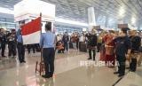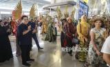 REPUBLIKA.CO.ID,TANGERANG -- Menteri BUMN Erick Thohir (kedua kiri) saat menghadiri parade budaya dan flashmob angklung di Terminal 3 Bandara Soekarno-Hatta, Tangerang, Banten, Rabu (16/8/2023).