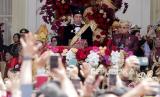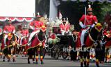 Tentara Nasional Indonesia menunggang kuda saat mengawal kereta Kencana dalam upacara peringatan 78 tahun kemerdekaan Indonesia di Istana Kepresidenan di Jakarta, Indonesia, Kamis (17/8/2023). (FOTO : EFE/ADI WEDA)