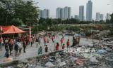 Warga mengikuti perlombaan dalam rangka HUT ke-78 Republik Indonesia di Kampung Cahaya atau Kampung Gasong, Menteng Atas, Jakarta Pusat, Kamis (17/8/2023). Kampung tersebut merupakan kampung yang dihuni oleh hampir sebagian penduduk berprofesi sebagai pemulung. Mereka hidup dan bertahan di Ibu Kota hasil dari barang-barang pungutan seperti plastik yang kerap ditemukan di tumpukan sampah. Meski demikian, menurut Mardi (45) salah satu warga mengungkapkan, momen perayaan HUT ke-78 Republik Indonesia ia syukuri meski kondisi ekonominya semakin sulit dari hari ke hari. Baginya, Kemerdekaan yang sesungguhnya adalah kesejahteraan yang merata, selama tidak tercapai, artinya Ia dan keluarganya masih harus berjuang meraih kemerdekaan tersebut. (FOTO : Republika/Thoudy Badai)