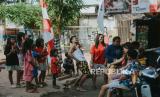 Warga berkumpul saat perlombaan 17 Agustus di Kampung Cahaya atau Kampung Gasong, Menteng Atas, Jakarta Pusat, Kamis (17/8/2023). Kampung tersebut merupakan kampung yang dihuni oleh hampir sebagian penduduk berprofesi sebagai pemulung. Mereka hidup dan bertahan di Ibu Kota hasil dari barang-barang pungutan seperti plastik yang kerap ditemukan di tumpukan sampah. Meski demikian, menurut Mardi, momen perayaan HUT ke-78 Republik Indonesia ia syukuri meski kondisi ekonominya semakin sulit dari hari ke hari. Baginya, Kemerdekaan yang sesungguhnya adalah kesejahteraan yang merata, selama tidak tercapai, artinya Ia dan keluarganya masih harus berjuang meraih kemerdekaan tersebut. (FOTO : Republika/Thoudy Badai)