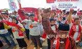 REPUBLIKA.CO.ID, PADANG -- Sejumlah relawan meneriakan yel-yel saat mengikuti deklarasi Ganjar Pranowo (GP2024) di Padang, Sumatra Barat, Jumat (18/8/2023). Ratusan relawan yang mendukung Prabowo-Sandiaga Uno pada Pemilu 2019 (PS2019) mendeklarasikan dukungannya kepada bakal calon presiden Ganjar Pranowo pada Pilpres 2024.