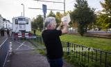 Seorang kontra-demonstran bereaksi di sela-sela demonstrasi oleh pemimpin gerakan anti-Islam Pegida Belanda Edwin Wagensveld, yang merobek salinan Alquran di depan kedutaan Turki, di Den Haag, Belanda, Jumat (18/8/2023). Swedia dan Denmark keduanya mendapat tekanan dalam beberapa pekan terakhir, menyusul pembakaran kitab suci umat Islam, yang memicu ketegangan diplomatik dengan beberapa negara mayoritas Muslim. (FOTO : EPA-EFE/RAMON VAN FLYMEN)