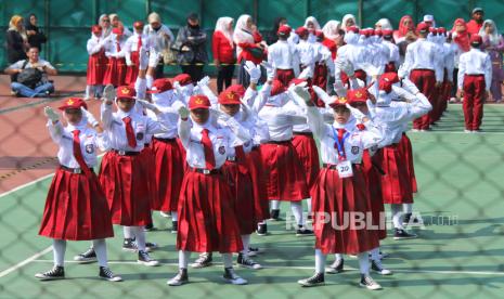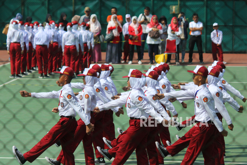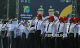 Para Paskibraka mengikuti lomba baris berbaris usai mengikuti Apel Besar Paskibraka Se-Jawa Barat Tahun 2023 di halaman belakang, Gedung Sate, Kota Bandung, Ahad (20/8/2023). Apel Besar bertajuk Paskibraka Sebagai Pengawal Pancasila untuk Indonesia Juara lahir dan Batin ini merupakan acara rutin untuk mempererat silaturahim para Paskibraka seluruh angkatan se-Jawa Barat. Apel Besar Paskibraka dihadiri sekitar 5.000 anggota Paskibraka dari 27 kabupaten/kota di Jawa Barat. (FOTO : Edi Yusuf/Republika)