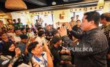 Erick tak sendiri saat menemui suporter. Direktur Teknik Timnas Indonesia, Indra Sjafri, juga ikut serta.