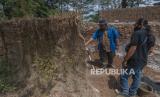 Pegiat cagar budaya Klaten dan mahasiswa Geografi Universitas Gadjah Mada (UGM) melihat lapisan tanah saat mengambil sampel tanah di area temuan objek diduga cagar budaya (ODCB), Kropakan, Mranggen, Jatinom, Klaten, Jawa Tengah, Ahad (20/8/2023). Selain mengumpulkan data berbagai temuan fragmen ODCB dan sumur kuno, kegiatan yang dilakukan oleh Badan Riset dan Inovasi Nasional (BRIN) bersama mahasiswa Arkeologi UGM dan Geografi UGM itu juga mengumpulkan data sampel tanah untuk melengkapi temuan objek diduga cagar budaya pada masa Mataram Kuno.  (FOTO : ANTARA  FOTO/Aloysius Jarot Nugroho)