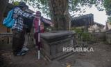 REPUBLIKA.CO.ID,   KLATEN  --  Mahasiswa Arkeologi Universitas Gadjah Mada (UGM) mengukur batu yoni di Kropakan, Mranggen, Jatinom, Klaten, Jawa Tengah, Ahad (20/8/2023).