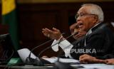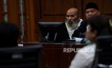 Hakim ketua Rianto Adam Pontoh saat memimpin sidang pemeriksaan saksi dengan terdakwa Lukas Enembe di Pengadilan Negeri Tipikor, Jakarta, Senin (21/8/2023). Jaksa penuntut umum (JPU) KPK menghadirkan empat orang saksi yakni Direktur PT Indo Papua Budi Sultan, Direktur Utama PT Laut Timur Papua Sherly Susan dan pemilik salon Imelda Sun dan satu saksi lainnya tidak hadir yakni karyawan swatsa Daniel Christian Lewi. Ketiga saksi tersebut dimintai keterangan dalam perkara suap dan gratifikasi senilai Rp46,8 miliar yang menjerat mantan Gubernur Papua Lukas Enembe. (FOTO : Republika/Thoudy Badai)