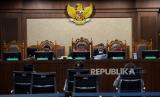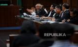 Hakim ketua Rianto Adam Pontoh (tengah) saat memimpin sidang pemeriksaan saksi dengan terdakwa Lukas Enembe di Pengadilan Negeri Tipikor, Jakarta, Senin (21/8/2023). Jaksa penuntut umum (JPU) KPK menghadirkan empat orang saksi yakni Direktur PT Indo Papua Budi Sultan, Direktur Utama PT Laut Timur Papua Sherly Susan dan pemilik salon Imelda Sun dan satu saksi lainnya tidak hadir yakni karyawan swatsa Daniel Christian Lewi. Ketiga saksi tersebut dimintai keterangan dalam perkara suap dan gratifikasi senilai Rp46,8 miliar yang menjerat mantan Gubernur Papua Lukas Enembe. (FOTO : Republika/Thoudy Badai)