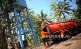 Petugas BPBD Bantul mengirimkan bantuan dropping air bersih di Dusun Petung, Kasihan, Bantul, Yogyakarta, Senin (21/8/2023). Sebanyak 2 armada tangki dikerahkan untuk dropping air bersih di Dusun Petung, Kasihan, Bantul. Untuk setiap suplai air bersih sebanyak 30 ribu liter air yang dibagi ke dalam dua tempat tandon air. Hingga minggu ini BPBD Bantul sudah melakukan dropping air bersih sebanyak 113 ribu liter imbas kekeringan. Ada empat wilayah yang terdampak kekeringan diantaranya Kelurahan Sriharjo, Imogiri kemudian Kelurahan Bangunjiwo, Kasihan dan Kelurahan Terong, Dlingo. (FOTO : Republika/Wihdan Hidayat)