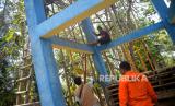 Petugas Tagana Bantul memantau tandon air saat air bersih di Dusun Petung, Kasihan, Bantul, Yogyakarta, Senin (21/8/2023). Sebanyak 2 armada tangki dikerahkan untuk dropping air bersih di Dusun Petung, Kasihan, Bantul. Untuk setiap suplai air bersih sebanyak 30 ribu liter air yang dibagi ke dalam dua tempat tandon air. Hingga minggu ini BPBD Bantul sudah melakukan dropping air bersih sebanyak 113 ribu liter imbas kekeringan. Ada empat wilayah yang terdampak kekeringan diantaranya Kelurahan Sriharjo, Imogiri kemudian Kelurahan Bangunjiwo, Kasihan dan Kelurahan Terong, Dlingo. (FOTO : Republika/Wihdan Hidayat)