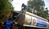 Petugas Tagana Bantul mengirimkan bantuan dropping air bersih di Dusun Petung, Kasihan, Bantul, Yogyakarta, Senin (21/8/2023). Sebanyak 2 armada tangki dikerahkan untuk dropping air bersih di Dusun Petung, Kasihan, Bantul. Untuk setiap suplai air bersih sebanyak 30 ribu liter air yang dibagi ke dalam dua tempat tandon air. Hingga minggu ini BPBD Bantul sudah melakukan dropping air bersih sebanyak 113 ribu liter imbas kekeringan. Ada empat wilayah yang terdampak kekeringan diantaranya Kelurahan Sriharjo, Imogiri kemudian Kelurahan Bangunjiwo, Kasihan dan Kelurahan Terong, Dlingo. (FOTO : Republika/Wihdan Hidayat)