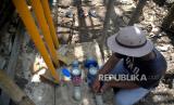 Petugas Tagana Bantul memeriksa pipa saluran air dari tandon saat dropping air bersih di Dusun Petung, Kasihan, Bantul, Yogyakarta, Senin (21/8/2023). Sebanyak 2 armada tangki dikerahkan untuk dropping air bersih di Dusun Petung, Kasihan, Bantul. Untuk setiap suplai air bersih sebanyak 30 ribu liter air yang dibagi ke dalam dua tempat tandon air. Hingga minggu ini BPBD Bantul sudah melakukan dropping air bersih sebanyak 113 ribu liter imbas kekeringan. Ada empat wilayah yang terdampak kekeringan diantaranya Kelurahan Sriharjo, Imogiri kemudian Kelurahan Bangunjiwo, Kasihan dan Kelurahan Terong, Dlingo. (FOTO : Republika/Wihdan Hidayat)