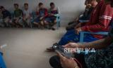 REPUBLIKA.CO.ID, BANGGAI -- Sejumlah warga binaan berkomunikasi dengan keluarganya menggunakan telepon genggam di ruang Wartelpas di Lembaga Pemasyarakatan (Lapas) Kelas IIB Luwuk di Banggai, Sulawesi Tengah, Senin (21/8/2023).