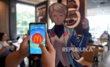 Pengunjung bermain pokemon Go saat acara peresmian kerja sama di Jakarta, Selasa (22/8/2023). McDonald (FOTO : Prayogi/Republika)
