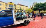 Polresta Bogor Kota menindak dan menertibkan puluhan unit sepeda listrik di Kota Bogor, yang penggunaannya di luar aturan Peraturan Menteri Perhubungan (Permenhub) 45/2021, Selasa (22/8/2023). (FOTO : Republika/Shabrina Zakaria)