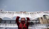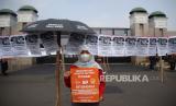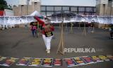 Aktivis Pekerja Rumah Tangga (PRT) melakukan aksi di depan gedung DPR, Senayan, Rabu (23/8/2023). Aksi dengan memasang isntalasi 580 jemuran anggota DPR itu sebagai simbol kepada pimpinan, ketua fraksi dan anggota DPR RI untuk segera membahas dan mengesahkan Rancangan Undang-Undang Perlindungan Pekerja Rumah Tangga (RUU PPRT). (FOTO : Prayogi/Republika)