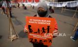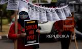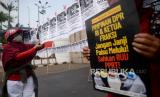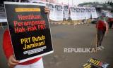 REPUBLIKA.CO.ID, JAKARTA -- Aktivis pekerja rumah tangga (PRT) melakukan aksi di depan gedung DPR, Senayan, Rabu (23/8/2023).