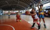 Mario Bon dari Little People Basketball Dream Team memegang bola saat pertandingan eksibisi melawan tim yunior lokal di Rodriguez, provinsi Rizal, Filipina. (FOTO : EPA-EFE/ROLEX DELA PENA)