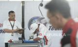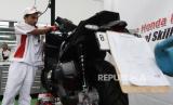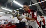 Teknisi mengikuti Astra Honda Motor Technical Skill Contest (AHM-TSC) di AHM SRTC Deltamas, Cikarang, Kabupaten Bekasi, Jawa Barat, Rabu (23/8/2023). PT Astra Honda Motor (AHM) menggelar AHM-TSC yang melibatkan 9000 teknisi,1800 service advisor dari 3700 AHASS untuk mengukur kesiapan serta keterampilan para teknisi maupun service advisor dalam melakukan pelayanan terhadap konsumen dan para pemenang berkesempatan mewakili Indonesia di honda global technical contest di Jepang. (FOTO : Republika/Edwin Dwi Putranto)