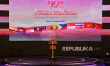 Ketua Dewan Komisioner OJK Mahendra Siregar menyampaikan sambutan dalam acara OJK Seminar On Financial Inclusion di Jakarta Convention Center, Jakarta, Kamis (24/8/2023). Otoritas Jasa Keuangan (OJK) menggelar kegiatan seminar dengan tema Closing The Financial Inclusion on Financial Inclusion and Urbans Through Digital Financial Inclusion yang dihadiri sejumlah tokoh dari perwakilan negara ASEAN. Seminar tersebut merupakan rangkaian dari kegiatan dari ASEAN Chairmanship 2023 yang akan berlangsung pada 5-7 September 2023 mendatang. (FOTO : Republika/Thoudy Badai)