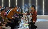 Kepala Eksekutif Pengawas Perilaku Pelaku Usaha Jasa Keuangan, Edukasi dan Pelindungan Konsumen OJK Friderica Widyasari Dewi (kanan) berjabat tangan dengan Ketua Dewan Komisioner OJK Mahendra Siregar (kiri) saat menghadiri acara OJK Seminar On Financial Inclusion di Jakarta Convention Center, Jakarta, Kamis (24/8/2023). Otoritas Jasa Keuangan (OJK) menggelar kegiatan seminar dengan tema Closing The Financial Inclusion on Financial Inclusion and Urbans Through Digital Financial Inclusion yang dihadiri sejumlah tokoh dari perwakilan negara ASEAN. Seminar tersebut merupakan rangkaian dari kegiatan dari ASEAN Chairmanship 2023 yang akan berlangsung pada 5-7 September 2023 mendatang. (FOTO : Republika/Thoudy Badai)