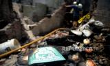 Petugas pemadam kebakaran bersama warga melakukan pemadaman sisa api lokasi kebakaran di kawasan Petojo Selatan, Gambir, Jakarta, Kamis (24/8/2023). Kebakaran yang melahap rumah padat penduduk itu terjadi pada Rabu (23/8/2023) malam yang diduga berasal dari ledakan kompor gas. Adapun, jumlah warga terdampak mencapai 574 orang yang terdiri dari dari 196 KK dan 152 rumah warga hangus terbakar akibat peristiwa tersebut. (FOTO : Republika/Prayogi.)