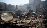 Warga berada di lokasi kebakaran di kawasan Petojo Selatan, Gambir, Jakarta, Kamis (24/8/2023). Kebakaran yang melahap rumah padat penduduk itu terjadi pada Rabu (23/8/2023) malam yang diduga berasal dari ledakan kompor gas. Adapun, jumlah warga terdampak mencapai 574 orang yang terdiri dari dari 196 KK dan 152 rumah warga hangus terbakar akibat peristiwa tersebut. (FOTO : Republika/Prayogi.)