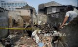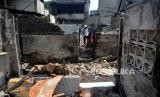 REPUBLIKA.CO.ID,JAKARTA -- Petugas pemadam kebakaran bersama warga melakukan pemadaman sisa api lokasi kebakaran di kawasan Petojo Selatan, Gambir, Jakarta, Kamis (24/8/2023).
