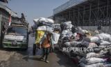 REPUBLIKA.CO.ID,BANDUNG -- Pesepeda melintas di samping tumpukan sampah di TPS Pasar Ancol, Pungkur, Kota Bandung, Jawa Barat, Kamis (24/8/2023).