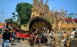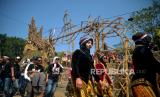 REPUBLIKA.CO.ID,MAGELANG -- Warga membawa kuda lumping berukuran raksasa saat acara Wahyu Makutaning Kamardikan di Panggung Festival Lima Gunung Desa Baleagung, Grabag, Magelang, Jawa Tengah, Kamis (24/8/2023).