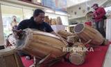 REPUBLIKA.CO.ID,BANDUNG -- Perajin memainkan gendang berbahan bambu karya Bengkel Alat Musik Bambu (BAMB) Lembaga Pendidikan Seni Nusantara atau PSN saat pameran ekonomi kreatif pada acara Temu Karya Taman Budaya Nusantara se-Indonesia XXII Tanuh 2023, di Taman Budaya Jawa Barat, Dago, Kota Bandung, Kamis (24/8/2023).
