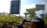 Papan informasi terkait Embung Soropadan yang mengering di Pringsurat, Temanggung, Jawa Tengah, Kamis (24/8/2023). Menurut informasi warga bahwa Embung Soropadan mengalami kebocoran dan belum ada perbaikan sejak beberapa tahun terakhir. Hal ini menyebabkan keringnya air embung saat musim kemarau. Embung dengan luas 1 hektare ini dibuat untuk mendukung pertanian warga terutama saat musim kemarau. (FOTO : Republika/Wihdan Hidayat)