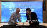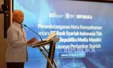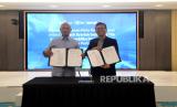 REPUBLIKA.CO.ID,JAKARTA -- Direktur Retail Banking PT Bank Syariah Indonesia Tbk (BSI) Ngatari bersama Direktur PT Republika Media Mandiri Arys Hilman Nugraha menandatangani nota kesepahaman antara PT Bank Syariah Indonesia Tbk dengan PT Republika Media Mandiri tentang layanan perbankan syariah di Jakarta, Jumat (25/8/2023).