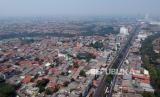 Foto udara kawasan Margonda depok yang tertutup kabut polusi udara di Depok, Jawa Barat, Jumat (25/8/2023). Kota Depok menjadi kota paling berpolusi di Indonesia pada Jumat (24/8) dimana indeks kualitas udara (AQI) di Kota Depok menyentuh 218 AQI US, yang menunjukkan tingkat polusi udara Depok masuk kategori sangat tidak sehat, diikuti Tangerang Selatan (187) dan Jakarta (169). (FOTO : Antara/Yulius Satria Wijaya)