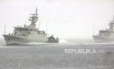 REPUBLIKA.CO.ID, SORONG -- KRI Kapak-625 (depan) dan KRI Panah-626 (belakang) melintas di Selat Sele sebelum merapat di dermaga Armada III, Katapop, Kabupaten Sorong, Papua Barat Daya, Jumat (25/8/2023).