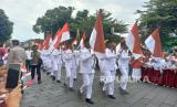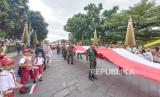 Kegiatan kirab merah putih itu dilaksanakan dalam rangka Hari Bhayangkara ke-77.
