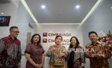 REPUBLIKA.CO.ID, JAKARTA -- Presiden Direktur CIMB Niaga Lani Darmawan, Chief of Network & Digital Banking CIMB Niaga Budiman Tanjung, dan Head of Region Jakarta B CIMB Niaga Adeline Hendarto serta jajaran manajemen saat meresmikan pembukaan model terbaru kantor cabang masa depan CIMB Niaga, yaitu Digital Branch di Pantai Indah Kapuk (PIK), Jakarta, Jumat (25/8/2023).