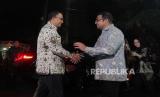 Bakal Calon Presiden dari Koalisi Perubahan untuk Persatuan Anies Baswedan (kiri) bersalaman dengan Sekjen Partai Demokrat Teuku Rifky Harsya saat tiba di kediaman Ketua Majelis Tinggi Partai Demokrat Susilo Bambang Yudhoyono di Puri Cikeas, Kabupaten Bogor, Jawa Barat, Jumat (25/8/2023). Pertemuan tersebut sebagai konsolidasi sekaligus membahas strategi pemenangan Pilpres 2024. (FOTO : Republika/Putra M. Akbar)